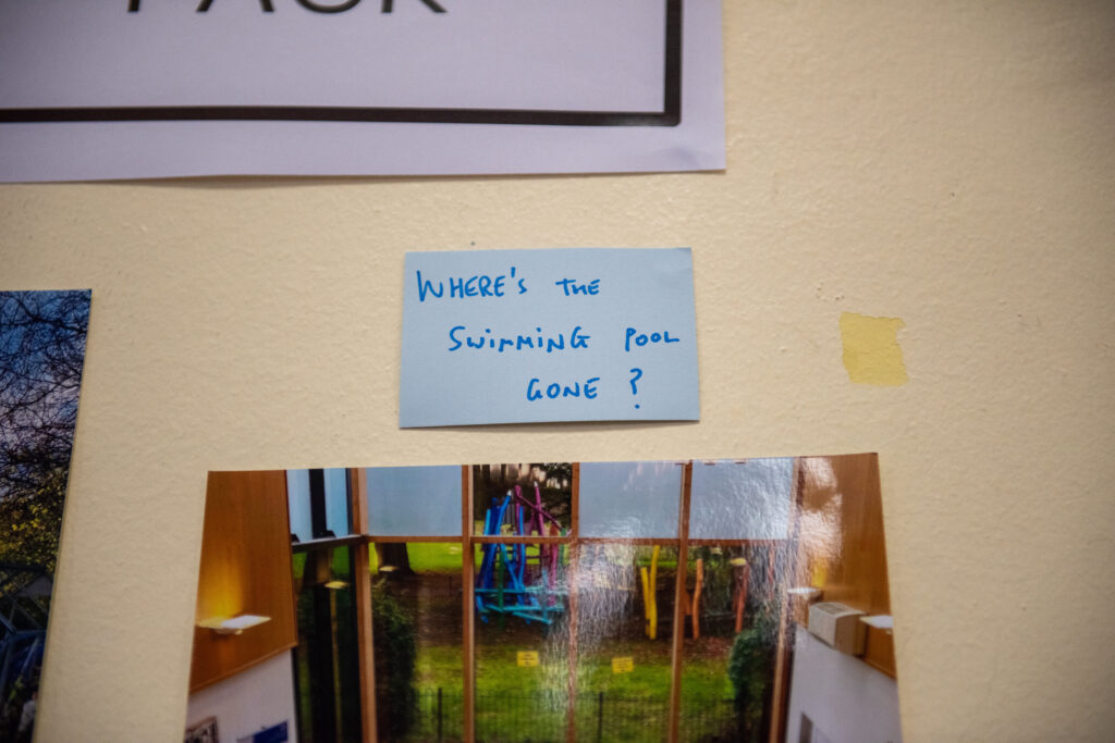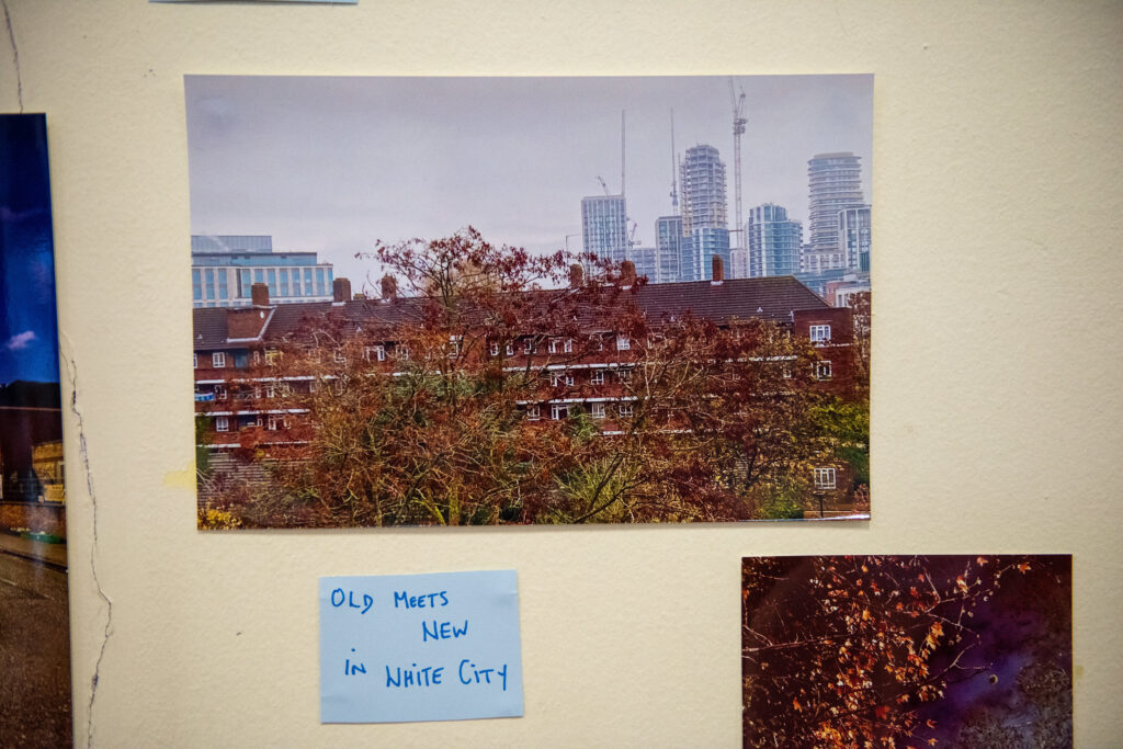 Angela’s pictures tell the story of generations of family members who have lived and worshipped in White City, including a view down a road captioned ‘Nan’s path to her church,’ the interior of a GP surgery that once housed a public swimming pool, and the former site of an over-50s social group attended by a relative. One shot is particularly thought-provoking: a view of the estate’s characteristic 20th century brick buildings, overlooked by cranes and glass skyscrapers rising in the distance behind.