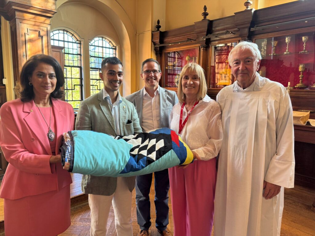 Following the Mass, Akhter presented a quilt made by guests of the centre, which he had acquired at the charity auction, to Cardinal Vincent Nichols; a moving reminder of the many ways in which the safe house brings people together to support the recovery of its guests and the fight against human trafficking.